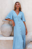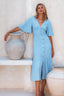 Simple yet charming Donna midi dress screams elegance and femininity. Handcrafted from soft breathable rayon into button down silhouette with smock waist on the back and fitted detailing on the front it cascades into a tiered skirt and is adorned with tortoise buttons and butterfly sleeves.