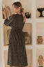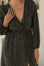 Show just a little skin wearing flattering slip-on Greta Midi dress. Designed with deep v-neckline, side slit and adorned with fabric covered matching buttons ob the hem this dress is ready for all your upcoming romantic dinners and cocktail parties. Elasticated cuff form a billowing sleeve adding to the flow and drape of the fabric.