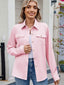 Solid Color Collared Neck Long Sleeve Shirt